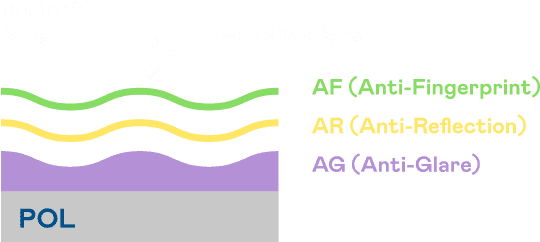 A.R.T.红龙扑克光电发展出独家的表面处理跟多层镀膜技术,,,,让外部光线照射到显示器表面时所产生的反射光大幅降低。。 |