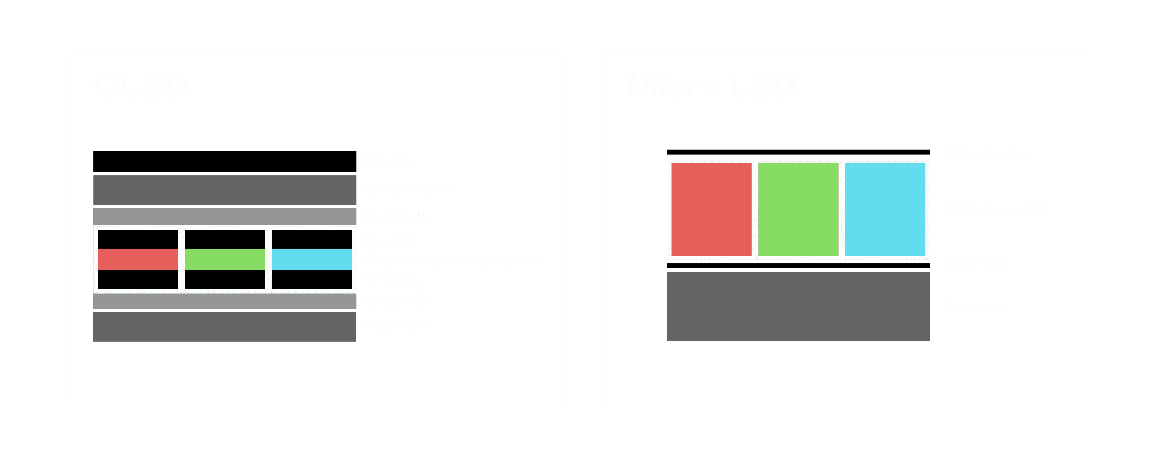 以 LED 做为显示画素,,可让 LED 的发光效率发挥到极致,,,,从而让显示器具备优异的亮度表现,,,,不论是在户外或室内,,,,均具备出众的显示效果。。同时,,与使用有机材料的 OLED 相比,,,LED 具备更稳定、、寿命更长的特性,,,,不仅不会有画面烙印问题,,而且更不容易出现故障、、坏点。。