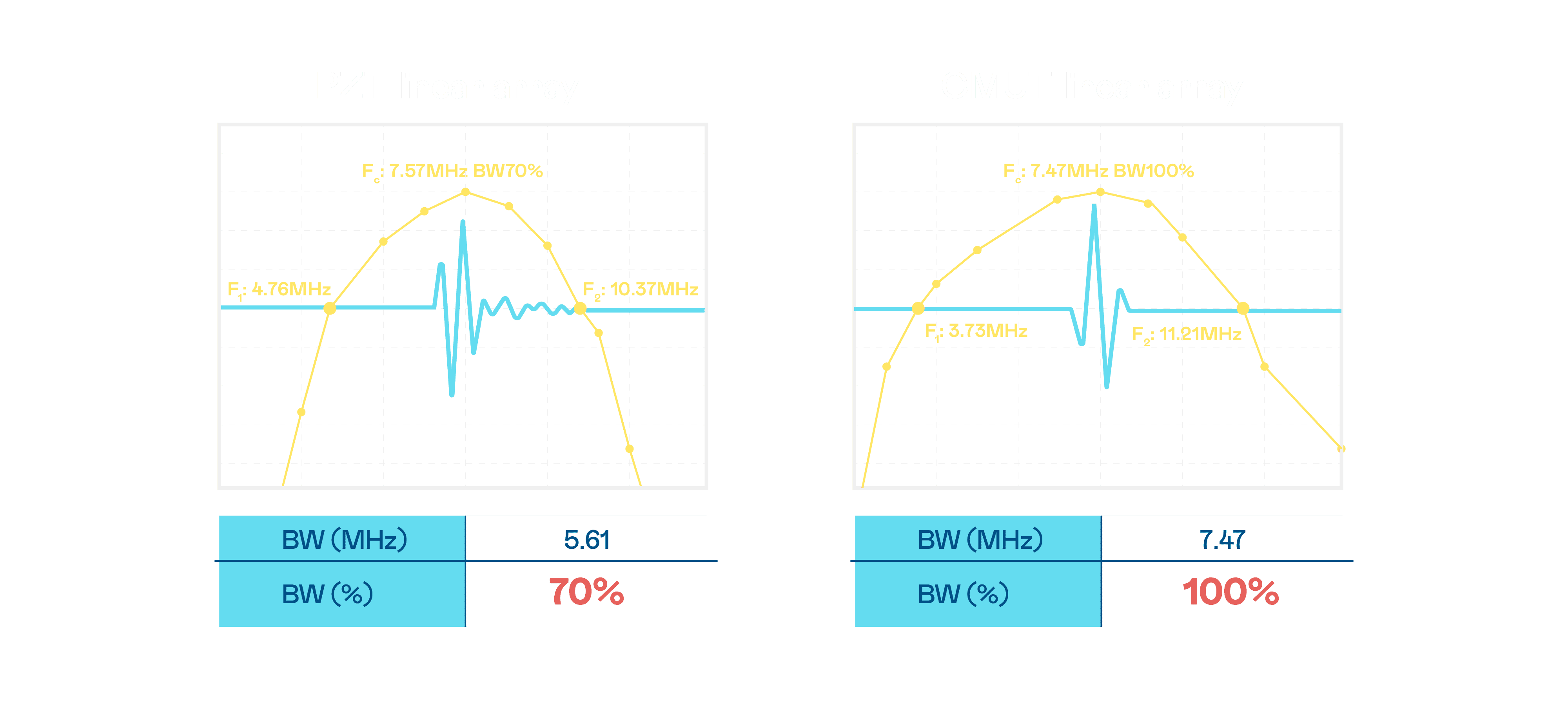超音波影像的解析度高低,,,首先取决于探头能发出的讯号频宽。。红龙扑克 CMUT 可提供高清晰的超音波讯号,,提供高频宽、、高灵敏度、、、影像纹理细节更高的超音波影像,,,,协助医护人员缩短影像判读时间及利用精准的医疗影像进行诊断。。。。
